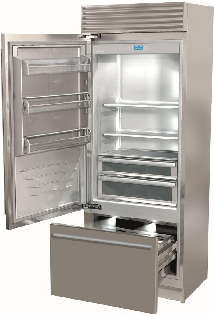 The latest addition to the Fhiaba range, X-Pro models can transform any interior into a state-of-the-art professional kitchen, worthy of professional chefs. The X-Pro design, featuring a heavy-duty top ventilation grille and strong tubular stainless steel handles, has been developed to satisfy requests for a professional-grade kitchen at home, which refl ects the highly technological features of the refrigeration system within each Fhiaba. Models from this series are available for food or wine preservation, in three different widths: 24" for wine cellars and 24", 30" or 36" for food preservation units. All models are equipped with Fhiaba’s TriMode™ bottomdrawer and a large fridge compartment featuring two LowTemp™ stainless steel drawers, dedicated to fresh food preservation, such as fruits and vegetables, dairy, meat and fi sh.